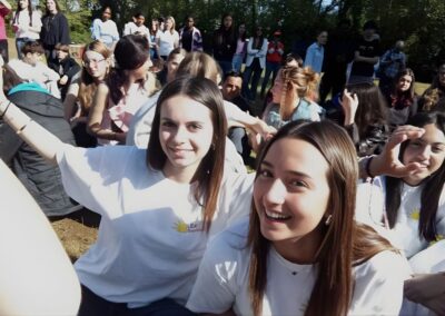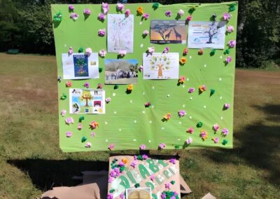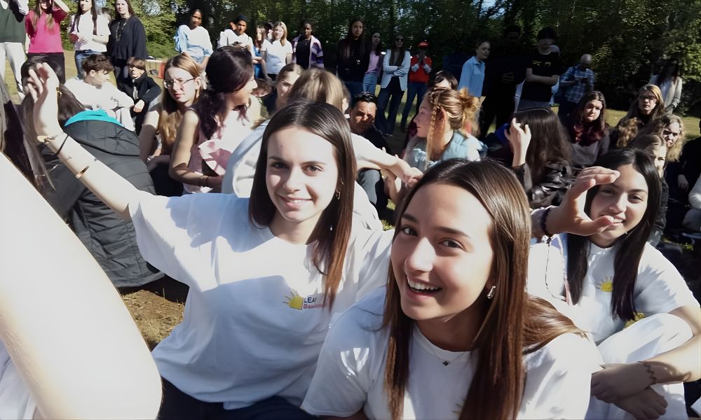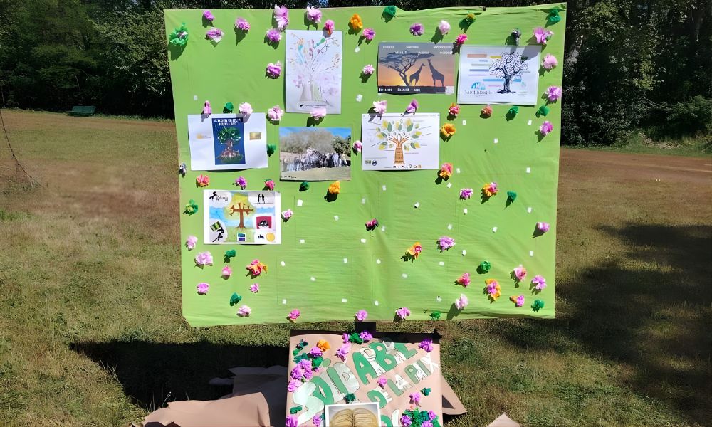 Ces ateliers, mêlant défis sportifs et jeux de réflexion, ont permis d’aborder de manière ludique et participative les enjeux essentiels liés à la solidarité internationale et aux défis planétaires. - La journée s’est poursuivie par une flashmob rassemblant l’ensemble des participants, symbole de la cohésion et de l’engagement des jeunes du réseau. Dans le prolongement de ce moment collectif, une œuvre éphémère baptisée « Solidarbre » a été réalisée : chaque établissement y a exprimé sa vision de l’arbre de la paix, donnant naissance à une création artistique porteuse de sens.